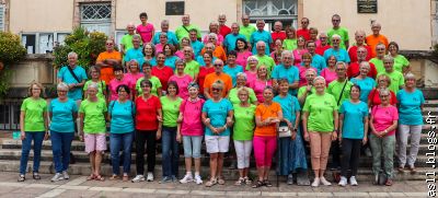 Pour commencer, mercredi 17 septembre a lieu la distribution de tee-shirts à chacun des membres. 5 couleurs étaient proposées ce qui va conduire à un mélange bigarré et aléatoire lors de la grande photo de groupe qui sera réalisée sur les marches de l'escalier de la mairie de Louhans.
