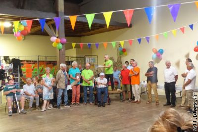 Le président fait un discours, essentiellement relatif à l'histoire du club, remercie les officiels. Il remet aux anciens présidents autres personnes méritantes plantes ou autres lots.